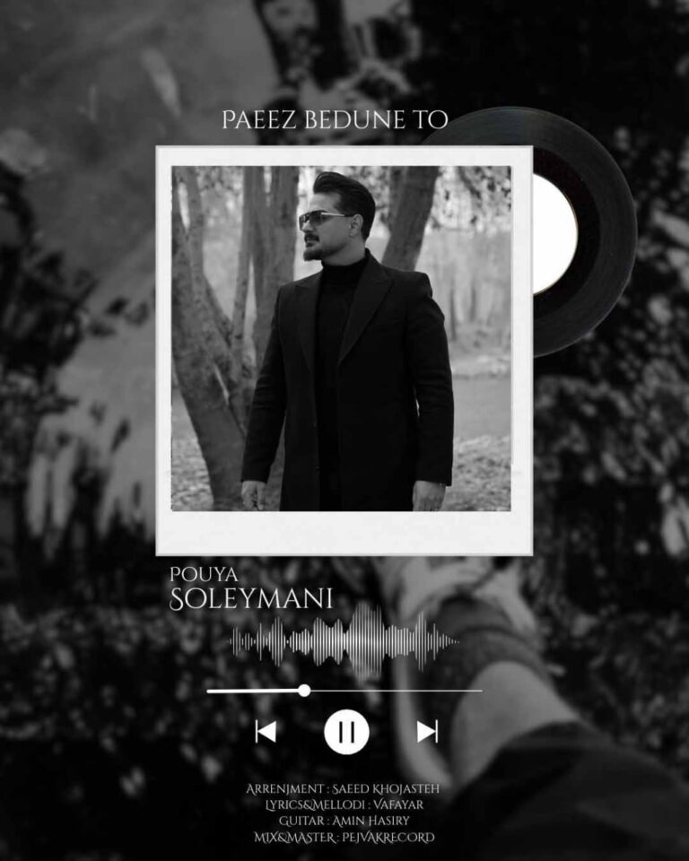 آهنگ جدید «پویا سلیمانی – پاییز بدون تو» هماکنون در رسانه ناب صدا در دسترس است. نسخه نهایی و اورجینال این موزیک، بدون تبلیغات صوتی (No Tag) ارائه شده است. گفتنی است که ترانهسرایی و آهنگسازی بر عهده Vafayar بوده و تنظیم بر عهده Saeed Khojasteh بوده و میکس و مسترینگ بر عهده Pejvak Record صورت گرفته است.
